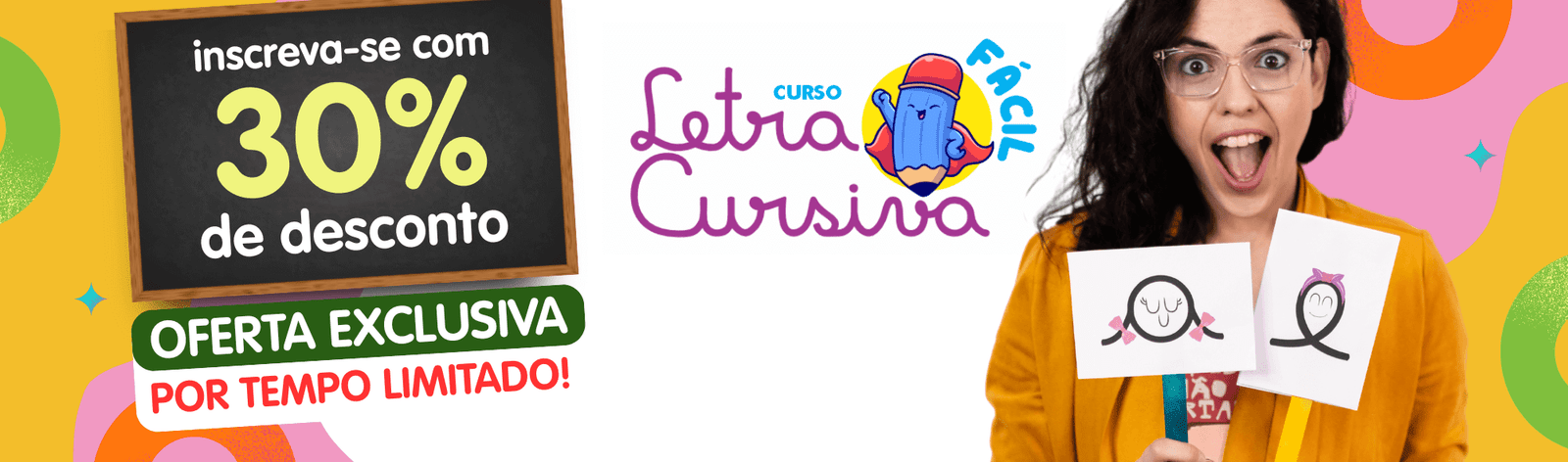 Neste curso você vai aprender histórias e recursos para ensinar Letra Cursiva para crianças de uma jeito simples e divertido.